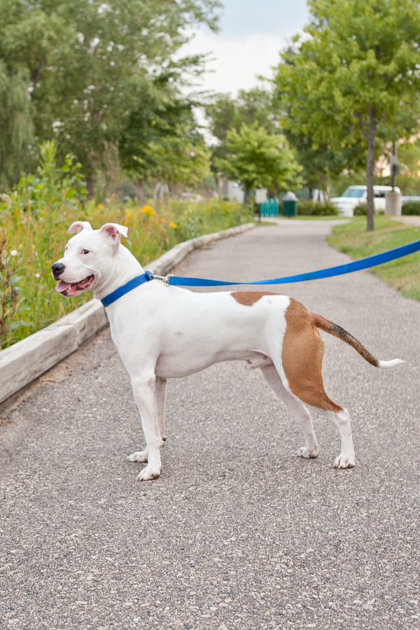 As I’ve mentioned before Jess speaks dog and has translated for us: “My name is Keno and I’m a boisterous pup who has been available for adoption through the Minnesota Pit Bull Rescue (Page) for a few months now. I might appear to be all white in many of these photos but it’s just because I move so fast my brown spots move by in a blur! I only have one emotion which is happy and I’m pretty obsessed with my squeaky ball. I could chase that for ages!! … Unless there are other people or dogs around … Then I’d like to go say hi and share some of my happiness!! “