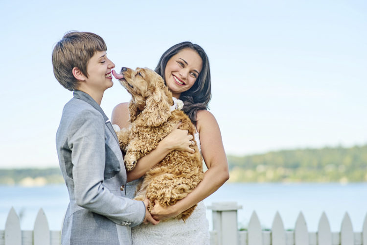 While most brides consider their hair options, Rachel was also thinking about her dog's. Rachel and Megan knew that they would be including Callie, their English Cocker Spaniel, in their wedding. So Rachel made sure that Callie was also looking her best for the big day. I love these wedding photos by Cydney of Lavender Bouquet Photography.From Cydney: "Megan and Rachel wed at the beautiful Hood Canal Vista Pavillion in Port Gamble, WA, surrounded by their loving family and friends. Their ... continue reading