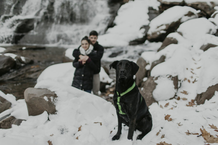 Although many couples book engagement sessions during warm weather, there's something magical about a snowy session. Brea from Belle La Vie Images photographed this dog-friendly engagement session with Jax the Shepherd-Labrador mix and his family.From Brea: "Nicole, Sergio, and their cute pup Jax braved this chilly morning winter engagement session set at the base of some beautiful falls. While Nicole and Sergio were snuggling up together, Jax was so excited to be running around, ... continue reading