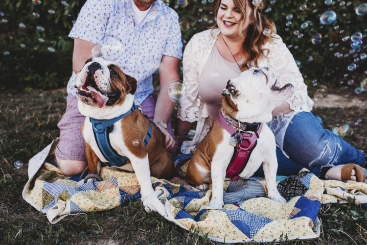 Bubbles are always fun for kids, but dogs love them too! English Bulldogs, Winston and Eleanor, had a great time catching bubbles during this family photo shoot with Irish Eyes Photography. From Sarah: "In 2016, one of our friends brought home an English Bulldog puppy, and we fell in love! We had tragically just lost our first bully at the young age of one to cancer six months earlier. We were very nervous about getting another dog but decided to check out what puppies were left. ... continue reading