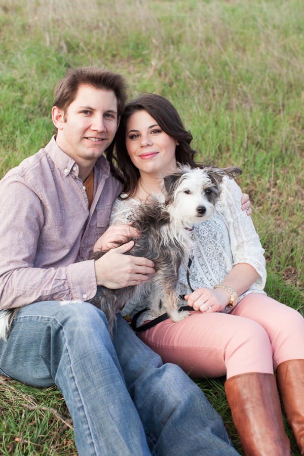I happen to be partial to dogs that are a little shaggy. Add some color variation, especially an eye patch and I’m smitten. Sweet little Dahlia has all that plus mad photo bombing skills. I am so happy to be able to share this engagement session from Katie Jackson Photography. The gorgeous couple and lovely Malibu location are simply icing on the cake.