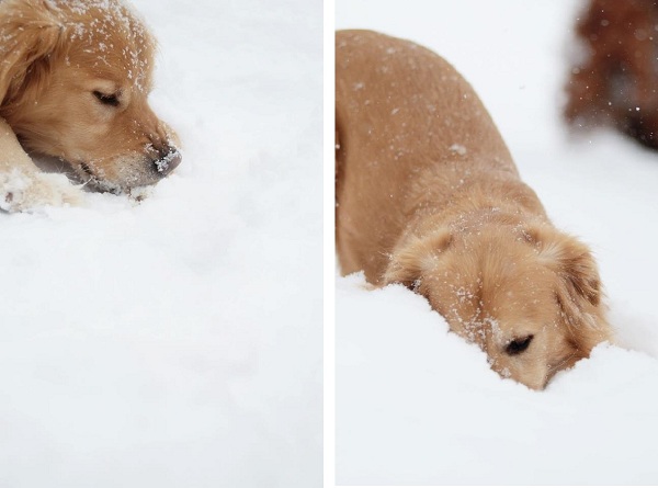 Awww look how cute he is! He loves the snow!