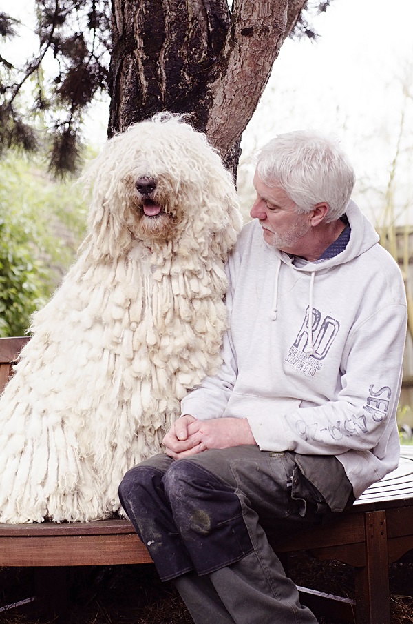 From Amber: “Four days before Piroska was due to compete at Crufts, her owner Paul submitted a plea for help on Facebook as she had rolled in a mud puddle and needed a full bath! Unfortunately he had pulled a muscle in his back and wasn’t able to groom her himself. Dogs Today editor Beverley Cuddy reposted his status and arranged for a groomer to help out and a photographer (me) to pop round and photograph the results. I wanted to record Piroska’s relationship with her human guardian – she’s not just a show pet, she’s his dog.