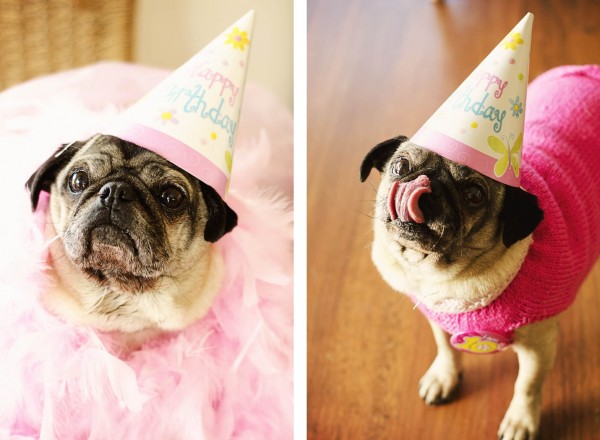 Now that is a party :D. Love the name and all those pugs. The surprised expression with the cake is my favorite, but they are all wonderful.
