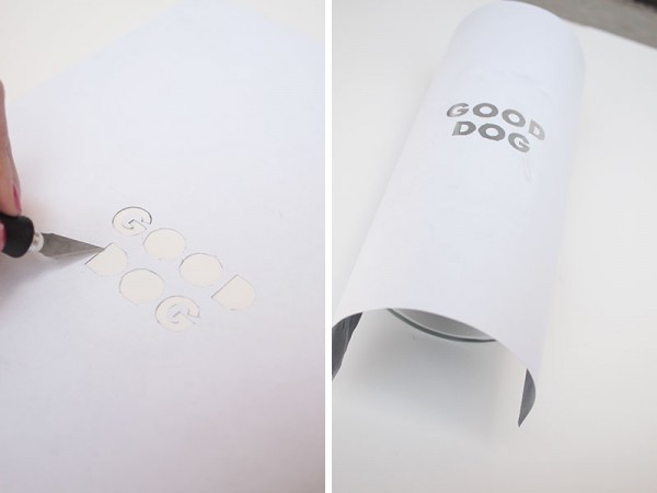 Step 3: Carefully cut out letters with an Exacto knife and adhere the sticky side to a jar.