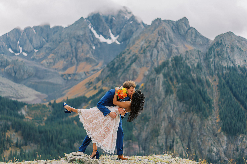 From Malachi: “Claudina and Igor wanted to do a fun hike for their wedding day where they could see impressive mountains. They came up from New Mexico into western Colorado at just the right time for some peak fall colors! It was a little rainy, but it held off just long enough for their ceremony. On our hike back down, though, we got absolutely drenched! They embraced it, though, and had fun with it. Claudina and Igor were going to bring Tumbleweed, their caique, but weren’t able to. So I surprised them and brought along my rainbow lorikeet Jarli!