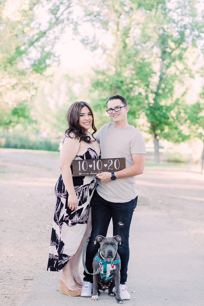 Look at Isla; she’s a cutie that loves ALL the attention. She plays an integral role in her humans’ lives, so I feel it’s ALWAYS valuable to incorporate your pets into your engagement photo session. Isla was a CHAMP during this session, and look how happy she looks with her humans! (pssst. who are we kidding? she was the real star of the show.)