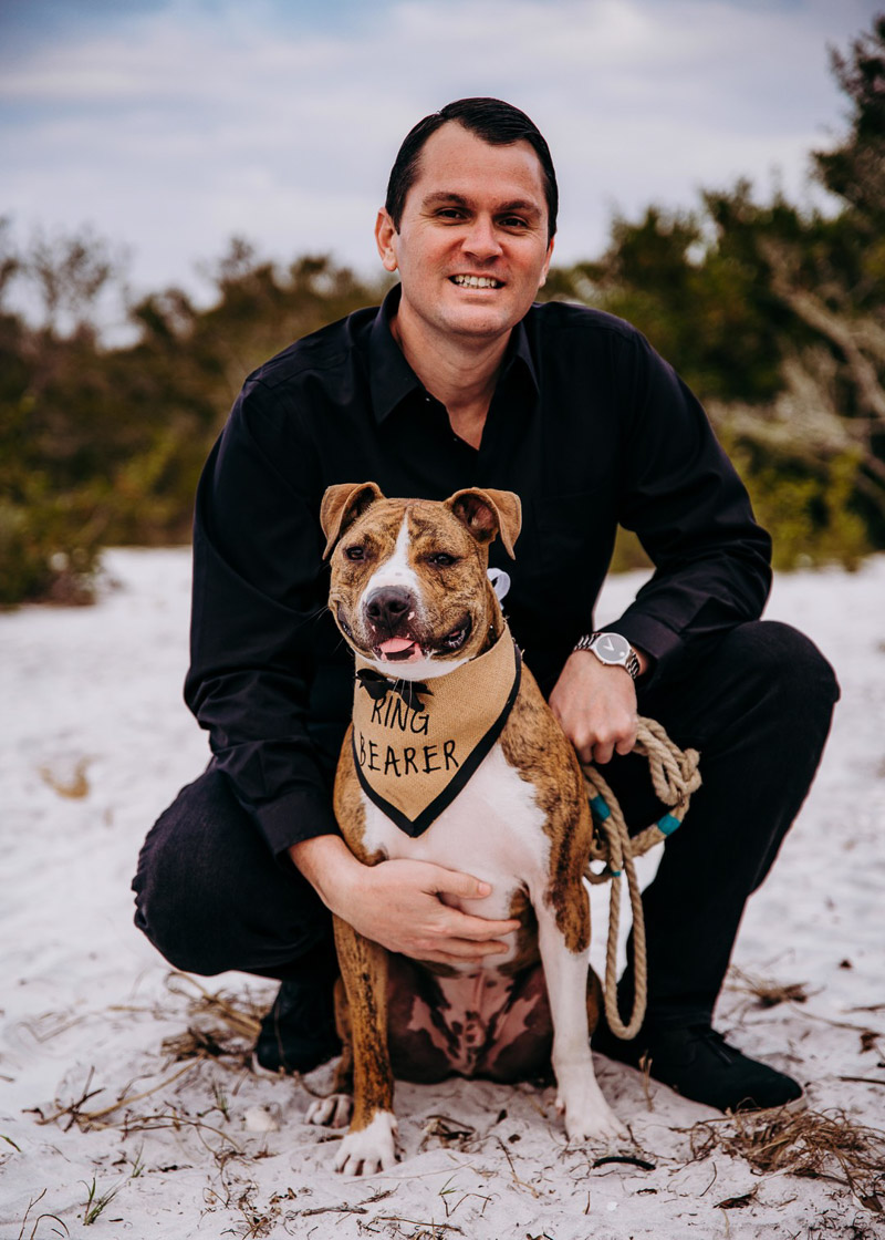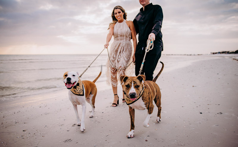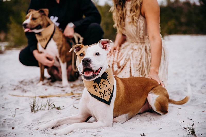 Happiness is a walk on the beach! Natalie from Landrum Photography found the perfect location for this dog-friendly engagement session, Honeymoon Island State Park. Although handsome dogs, Calvin and Tigger, stole the spotlight in many of the images, you can also see a lot of romantic pictures on Natalie’s blog.