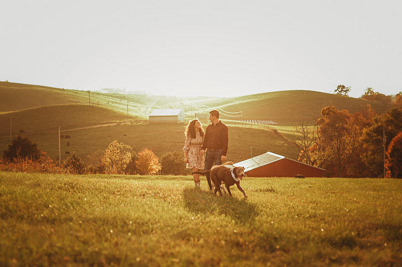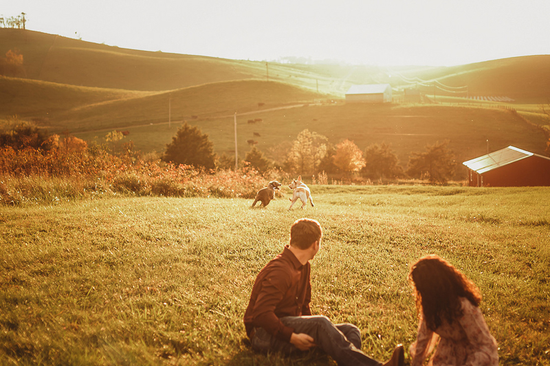 Everything is better with dogs, especially photography sessions! If you are making a bucket list of beautiful places to visit, add Bland, Virginia to the list! West Virginia and Virginia photographer Amanda Gibson photographed this lovely dog-friendly fall engagement session earlier this year. Labradors, Cooper and Clyde, had lots of room to run and play during the photo shoot.