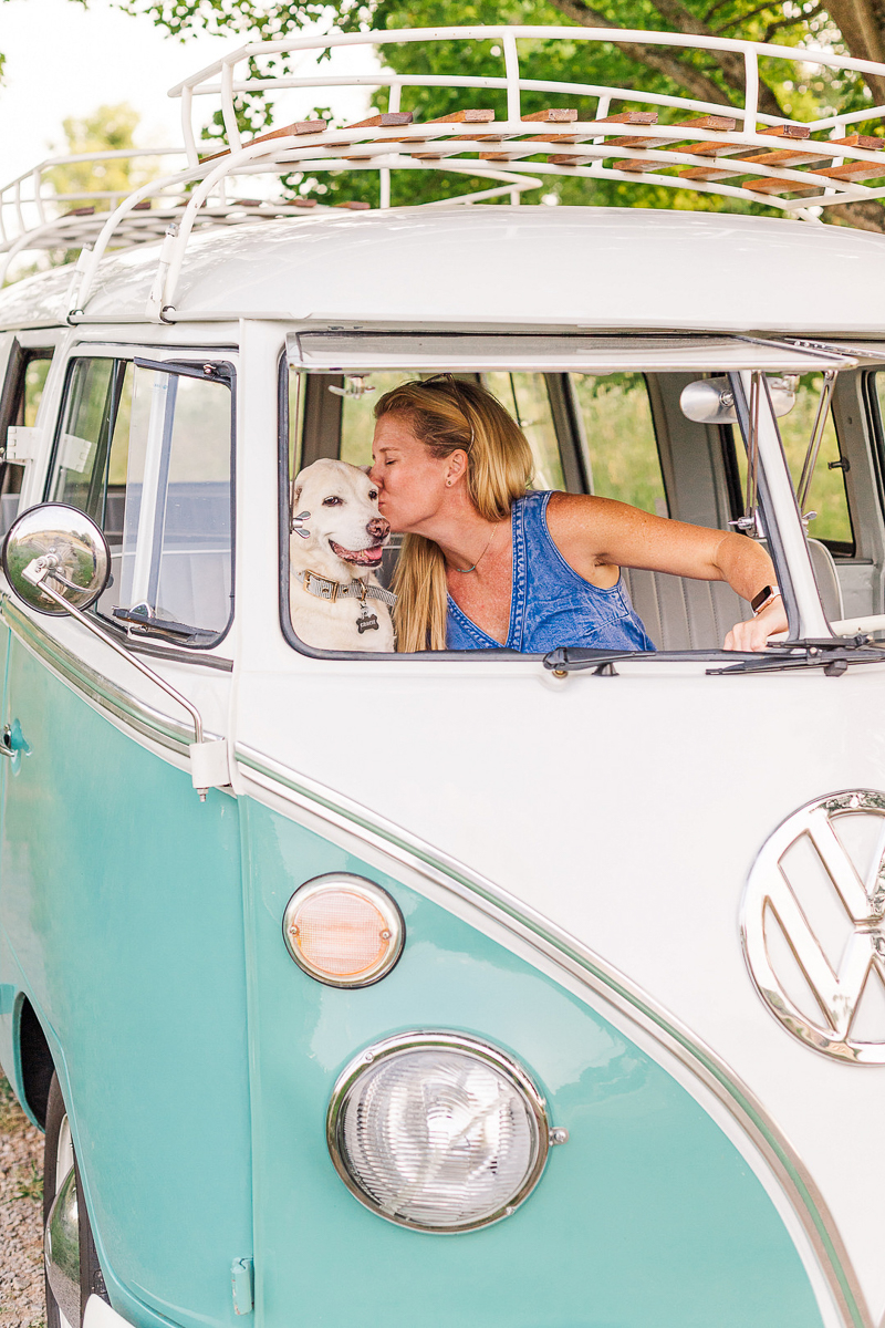 From Leah: “This session was so special! Michelle reached out to me about a session with her dog, who was getting older in age. She wanted to capture these precious memories with her before it was too late. They also wanted to use their VW Bus since they love driving in it together!