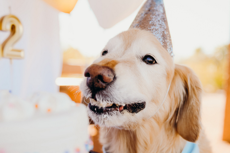 If you’ve ever considered throwing a party for your pup, I hope you will. Some people may scoff and say that a dog doesn’t even know when his birthday is. However, a dog always knows when something special is happening. Dog parties don’t have to be elaborate, but I’m a big fan of picture-perfect moments. Photographer Ali Tso captured these adorable moments between Lucky, the Golden Retriever, and his favorite person, Lindsey. Special details for the celebration include the coolest, shiniest birthday hat, a birthday bandana, balloons, a birthday bandana, a cake with candles, but the best part of all is the love between them.