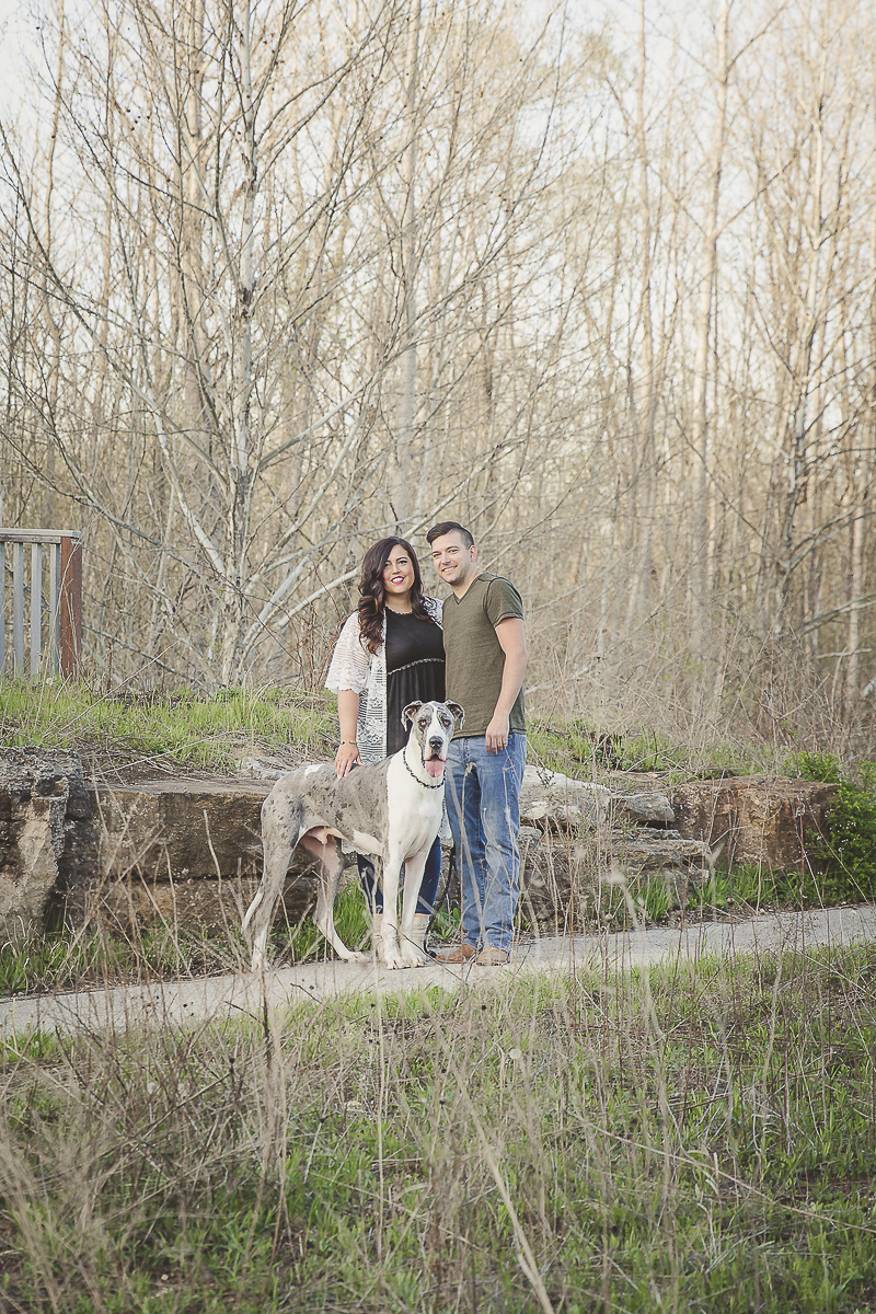 From the Couple: “In our pictures is Duke, our baby! He just turned four years old on July 10th. My fiancé Kevin and I have had him since he was a little pup. He is a Great Dane (mantle Merle is the color they call his light grey with the darker grey spotted coat). Kevin and I always wanted a Great Dane, so when we got our own place, we started looking for a good breeder. We found a couple who was very knowledgeable and nice.