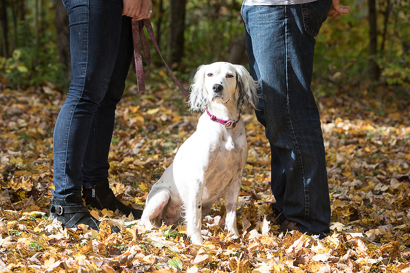 From Cat: “I had such a fun time getting to know Nellie and Trevor and their amazing fur-family during this fall engagement shoot. Their dog, Winnie (short for Winifred), is more human-like than most people. Winnie is an eight-year-old Llewellin Setter, or at least they’re pretty sure she is.