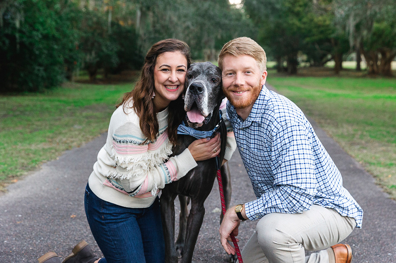 Dogs are family, so it makes me happy to see dog-friendly family photo sessions like this one from Charleston Photo Art. Blue, the Great Dane, is (literally) a huge part of this couple’s life. Dennis always encourages his clients to bring their dogs to their sessions.