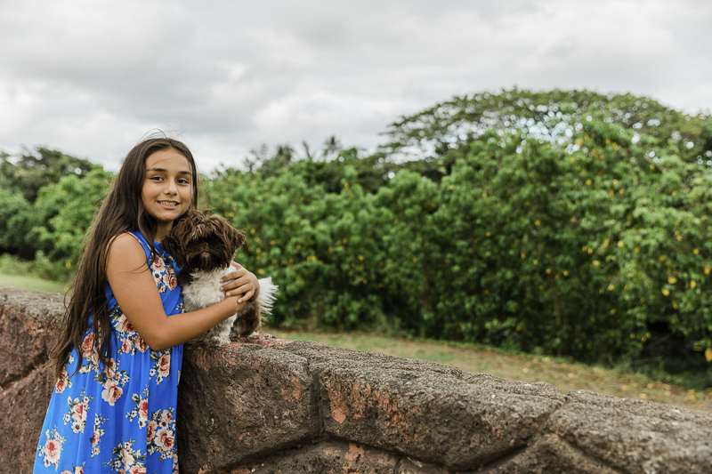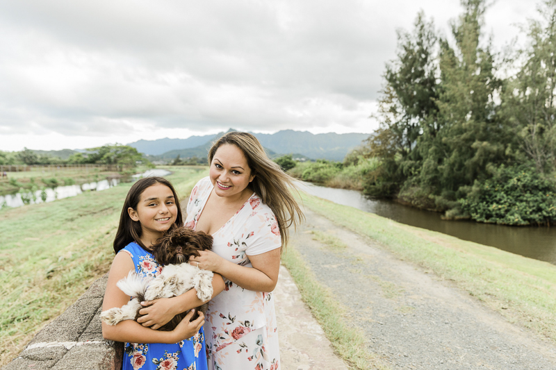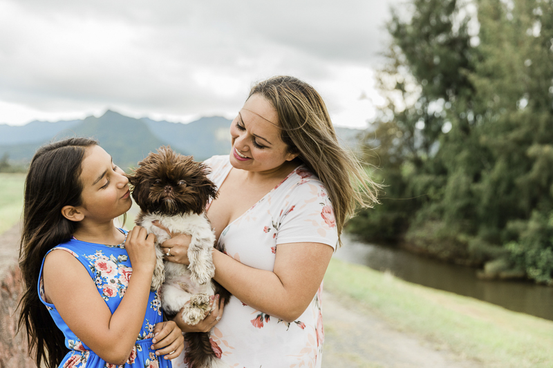 Last year, Oahu Family Milestone photographer, Storm Elaine, held some mini sessions in honor of Mother’s Day. One mom brought her daughter and their dog, Chippy. As you can see, he is quite adorable!