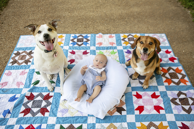 A dog-friendly family portrait would be the perfect Mother’s Day gift. I love the photo of the baby and the two dogs. So sweet!