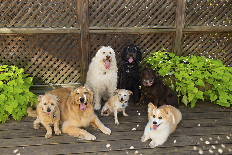 This pack of seven live in multiple homes, but seem to get along quite well! From left to right they are Abby, Lincoln, Mr. River Biscuit, Kobe, Jax, Ace, and Ozzie.