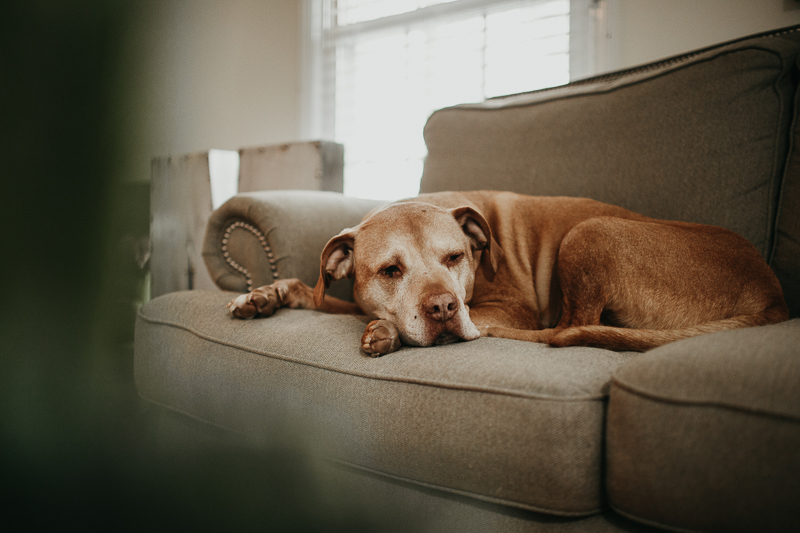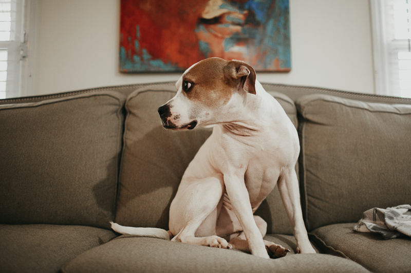 In February, Charlotte wedding photographer Amanda Moss focused her camera on her pups, Judge, Moses, and Sunday in their home in Gastonia, North Carolina. I love these photos of dogs relaxing at home!