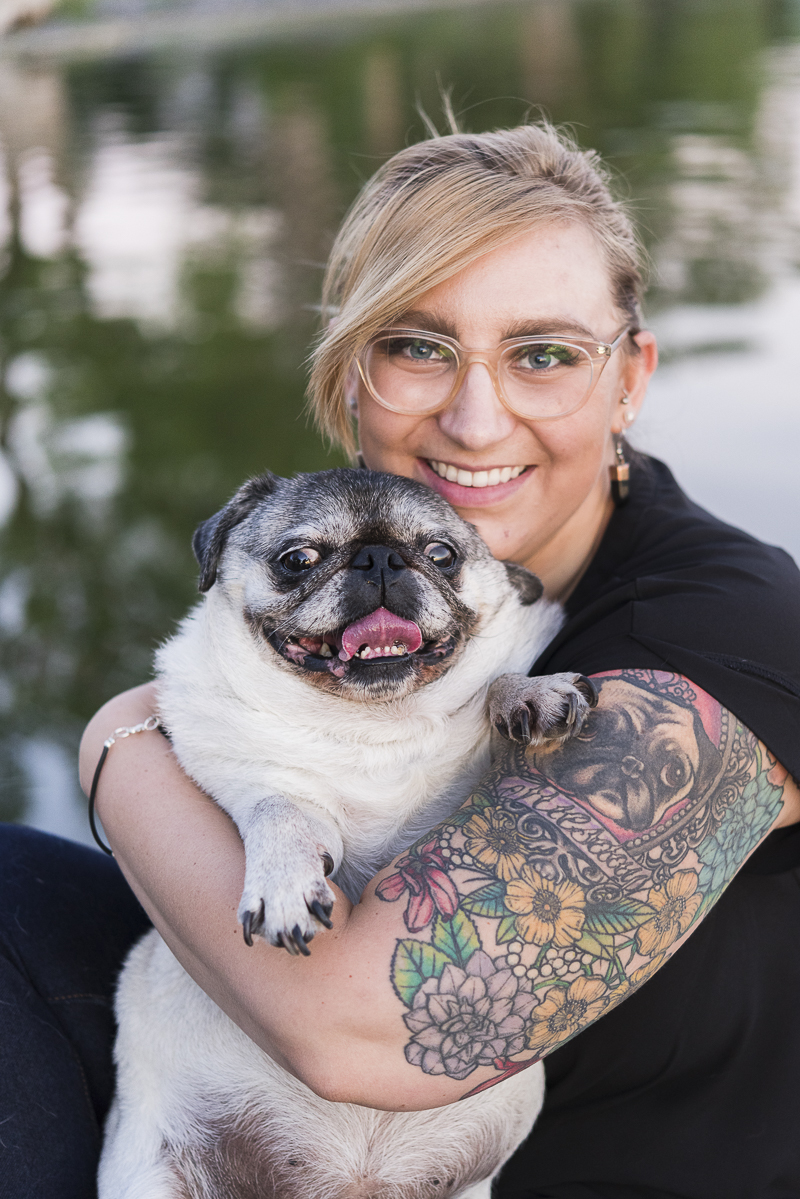 I had been following Tuesday the Pug on Instagram for a while before I realized that she lived near me. I called my sister, Alice G Patterson, and told her all about Tuesday and her momager, Kristen. One day Alice recognized Tuesday and Kristen at the park and introduced herself. After a few years of mutual admiration, Kristen won a bid on a photo session with Alice through Buffalo Pug & Small Breed Rescue. If you don’t already love Tuesday, you’re about to!