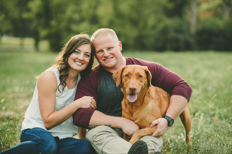From Ashton: “Mia is our little girl from Texas, and she has a big attitude and love to match. She’s a pretty unique pup with her white paws and her liver-colored nose, which are what drew us to her. Mia easily became such a large part of our family that we knew our engagement photos wouldn’t be complete without her.