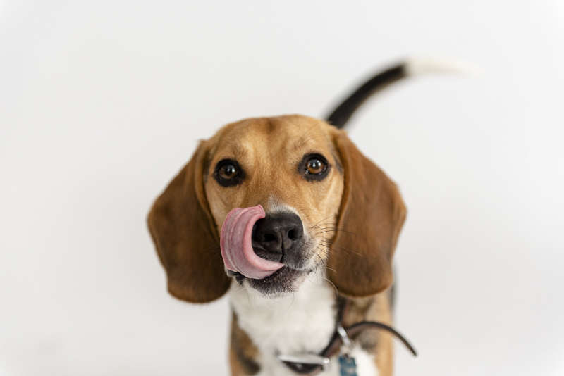 Both of these dogs are adorable. I absolutely love the picture capturing the beagle licking his chops.