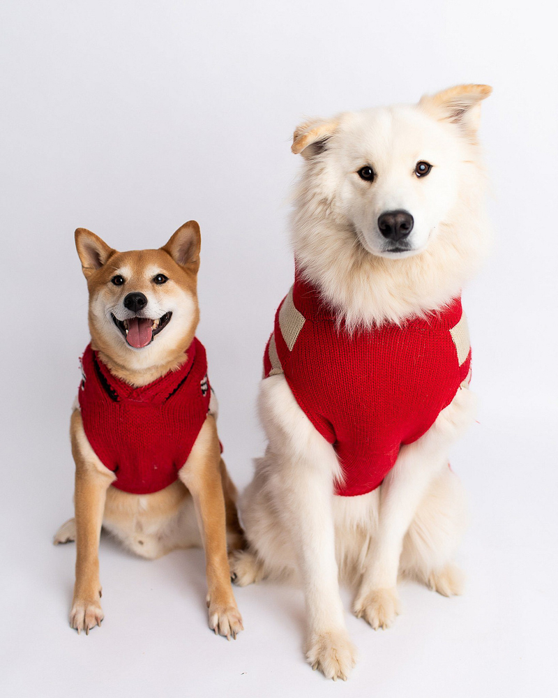 From Kyla: “The photos are from a Christmas session that we do each year for Rizzo’s parents, Kuma and Aki’s grandparents. Kuma is a 3-year-old Samoyed who is a big, fluffy, silly goofball.