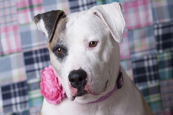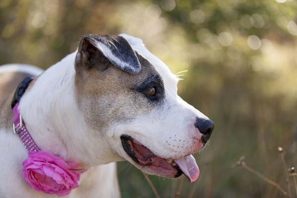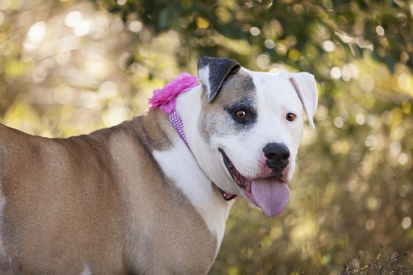 Star is a big American Bulldog mix and is six years old who has impeccable house manners, with no food or toy resource guarding. Star knows not only voice command, but also some sign language. She is fully house broken and has even been trained to eliminate on command. She loves to walk, and is wonderful on a leash. She’s active and loves hiking and swimming but is just as content to cuddle with you on the couch. Not once did she bark on our photo session outside. She knows all the basic commands and her intellect is ready to learn more. She’s wonderful with children and adores being with them. Her foster mom is currently working with her to see how she reacts with other dogs and smaller animals. At six years old, Star is ready to settle down and find her best friend.