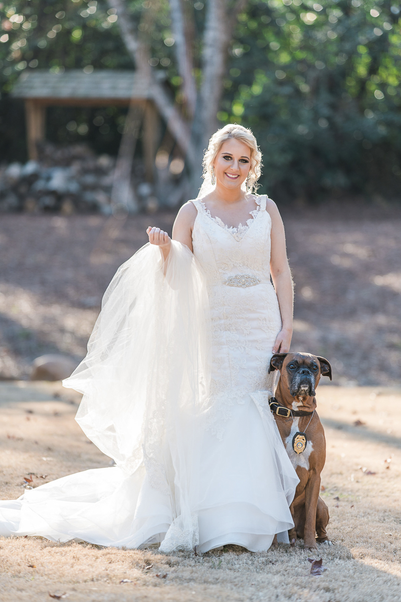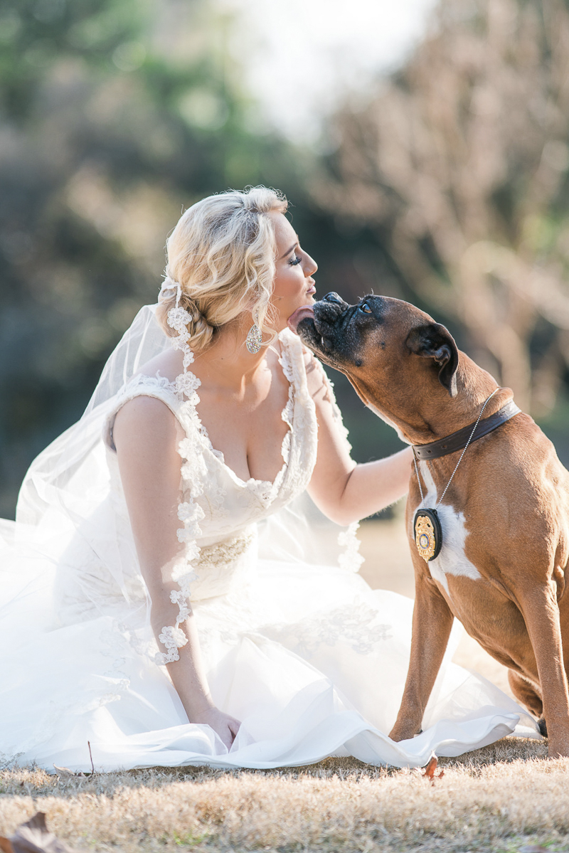 Gorgeous portraits! I love how meaningful these captured moments are, and I especially loved how the beautiful bride had the photos taken with her fiance’s dog and had Diesel wear his badge. I adore this!