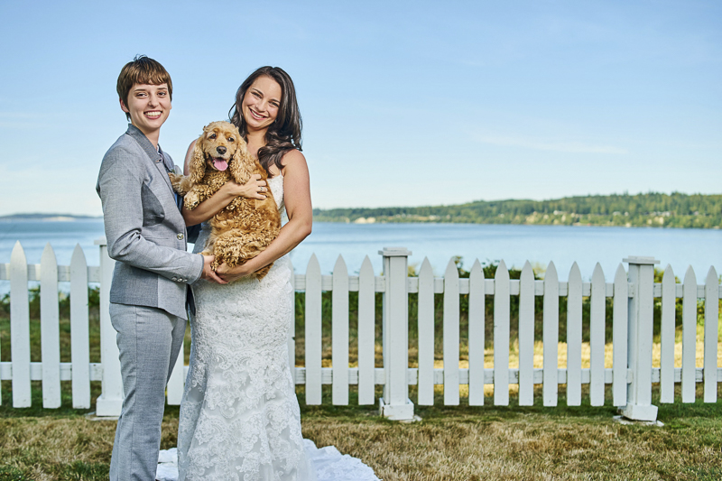 From Cydney: “Megan and Rachel wed at the beautiful Hood Canal Vista Pavillion in Port Gamble, WA, surrounded by their loving family and friends. Their sweet dog, Callie, was the dog of honor and the ring bearer. The day could not have been more perfect!”