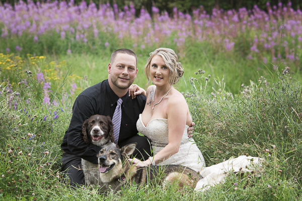 From Crystal: “Paula and Tim escaped to the mountains to tie the knot, and due to hotel restrictions and the hustle and bustle of planning a wedding they were unable to bring their dogs Sheba (Shepherd Cross) and Riley (Springer Spaniel) along. However, they knew they needed to include their very loved pets in this special occasion so as soon as they returned they got back into wedding gear and planned a special photo shoot just to incorporate these two in the wedding experience. They also had a special announcement; that they are soon going to have a little brother or sister!”