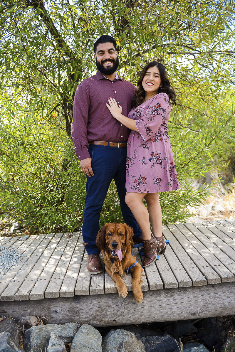 From Cris: “Recently we met up with Adan and Anakaren at Mission Trails in Santee for their engagement session. We truly loved this shoot. Not only did we get to photograph this super fun couple, (who are clearly madly in love with each other), but their dog was there for the shoot as well! If you know anything about us, it’s that we love dogs. So we were thrilled that Buddy came along for his mom and dad’s engagement shoot!