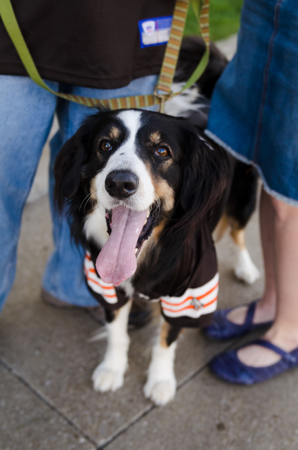 From Erin: “Conway is a 3-year-old Border Collie mix. We adopted him in May 2012 from Canine Lifeline. Conway is a sweet, happy dog and we’re so happy to have him as a part of our family. Despite being a higher-energy breed, his favorite thing to do is sleep in and cuddle. As long as we’re there with him, he would rather lie in bed than go outside or even eat breakfast! He also loves belly rubs, car rides, stalking squirrels (and skunks!), and going running with Erin. He loves squeaky toys and always brings us one to play with when we return home.”