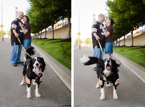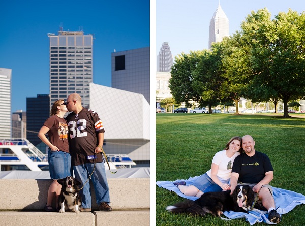 From Leigh: “This engagement session features Erin and Jeremy and their dog Conway. I first met this couple when they adopted Conway at a pet Adopt-a-thon. We recently completed a Chewbone Studio portrait session of Conway. Erin and Jeremy then contracted me for their wedding photography, including an engagement session with Conway. The engagement session took place at Voinovich Park and the exterior of Cleveland Browns Stadium in Cleveland, OH. Conway is such a big part of this couple’s life, that it only made sense to include him in the session.”
