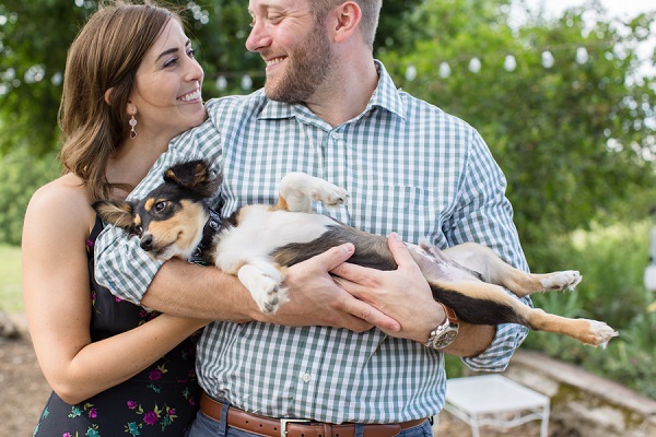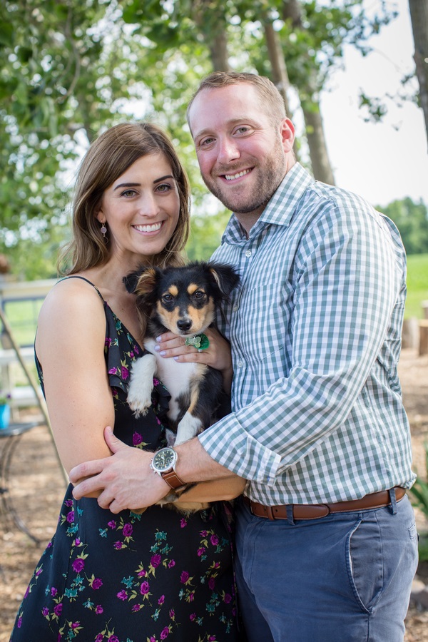 What a sweet couple and CUTE dog!! That looks like a little bundle of happy trouble.