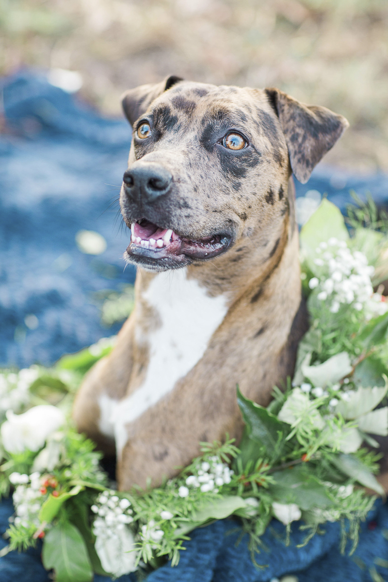 There’s something almost magical about these photos of Nala and her family from Rochelle Maples Photography. Nala has one of the prettiest floral wreaths I’ve seen and the most striking markings. Initially, I thought she was part Catahoula, but she’s an Aussie-Lab mix. In addition to being beautiful, Nala is quite talented and affectionate.