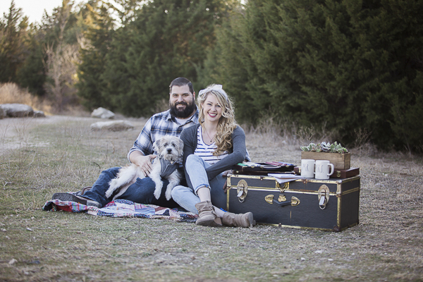 This engagement session by Lorena Burns Photography shows how a few props can make a photo session even more personal. Of course, their terrier mix steals the show.