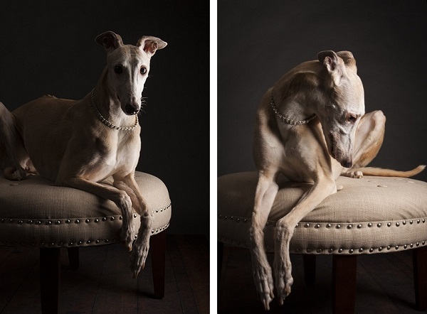 While greyhounds may be inherently graceful, these girls have been modeling for a long time. Their mom photographs them regularly for their blog. Bunny in particular has her signature poses.
