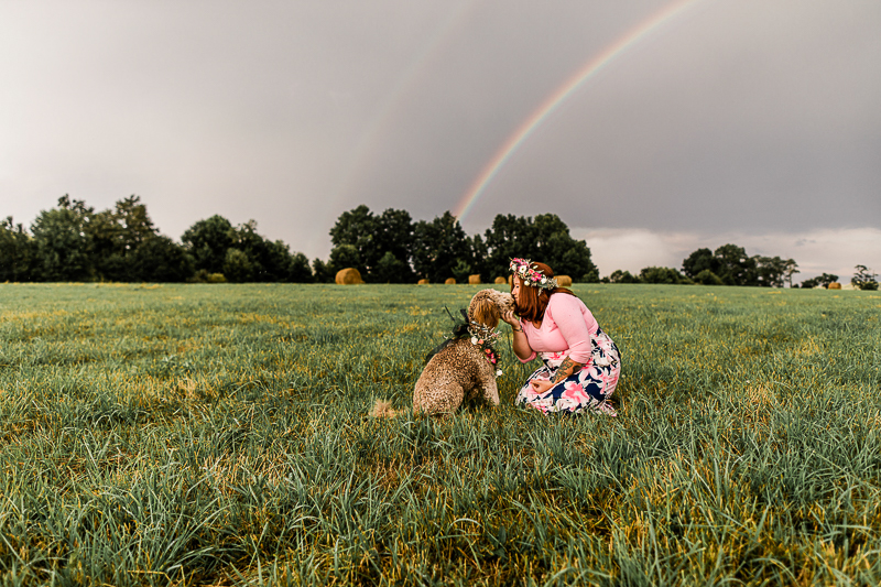 This girl has healed a place in my heart that yearned for more, and that yearning is gone. It was perfect when we showed up to the farm for photos with matching floral accessories and there was a double rainbow as our backdrop.
