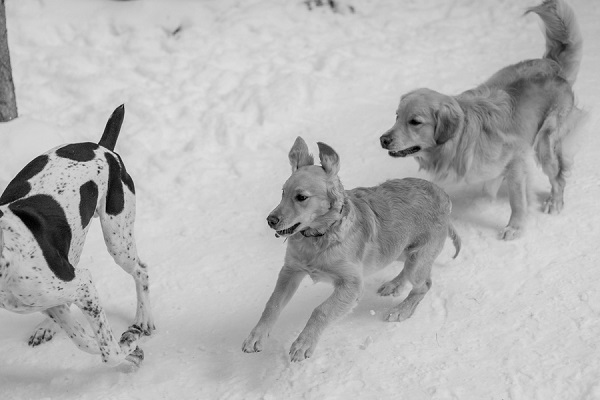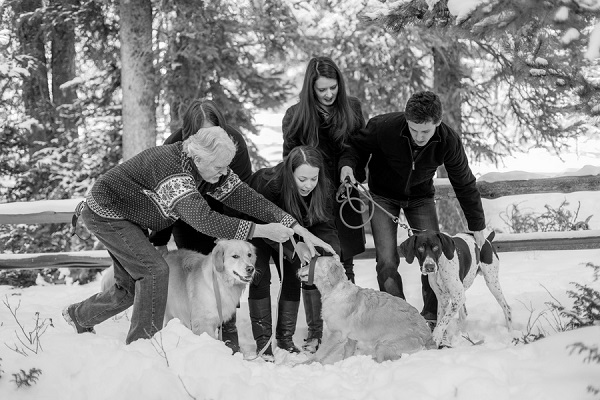 Now that winter weather is here and we have snow, I am feeling excited about the holidays! This is the perfect time of year to get family photos taken like this fun session by Meigan Canfield Photography. Last winter Megan photographed these happy humans and their dogs having some winter fun! Ruby, Golden Retriever, 4 months, Ripley, Golden Retriever, 10 months and Ragan a 13 month old a German Shorthaired Pointer.