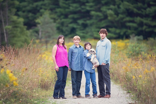 From Melissa: “This was a very special portrait session that took place recently here in Cambridge, Ontario. I received a very heartfelt call from a lady who was about to lose the family dog. They had given him 2 weeks to live. Many years ago when the youngest boys (twins) were born, a family member had given this little pup as a gift to the big brother.