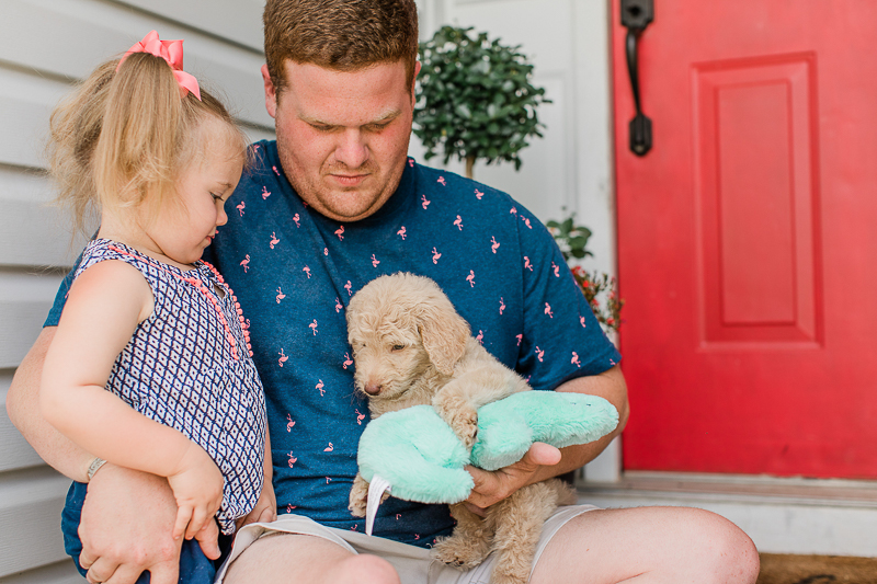 With proper supervision and teaching, dogs and kids go together like peanut butter and jelly. Lexington lifestyle photographer Brandy Morrison surprised their daughter with a cute puppy, Beau, the Golden Doodle.